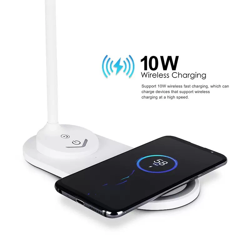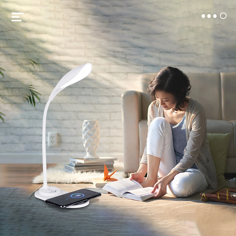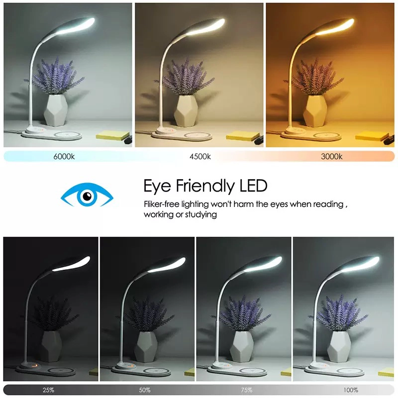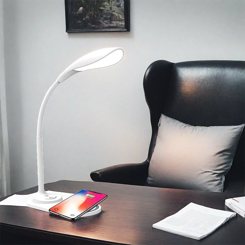 This energy-efficient LED desk lamp features stepless dimming, 3 color temperatures, a flexible gooseneck, and 10W wireless charging. Ideal for office, home, or study desks—flicker-free lighting that protects eyes and boosts productivity.