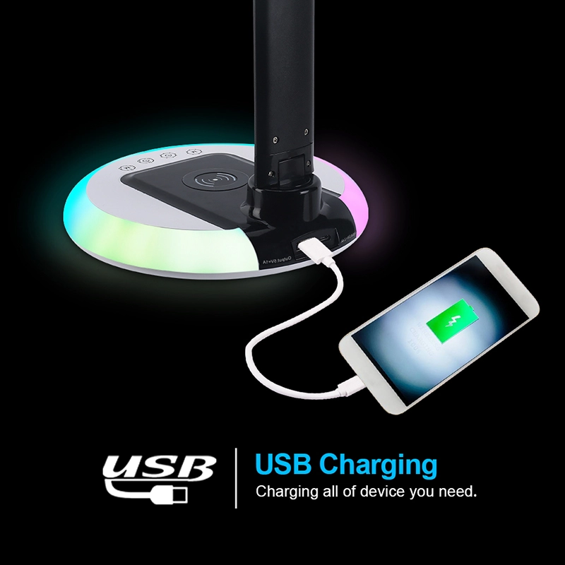 Eye-Caring LED Desk Lamp with RGB-10W wireless charging