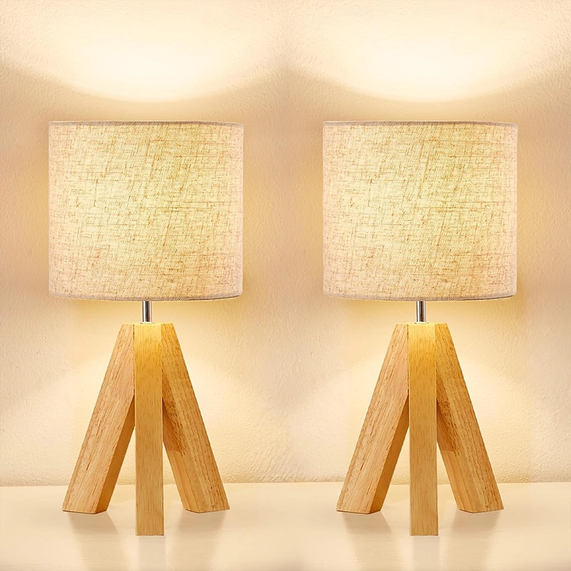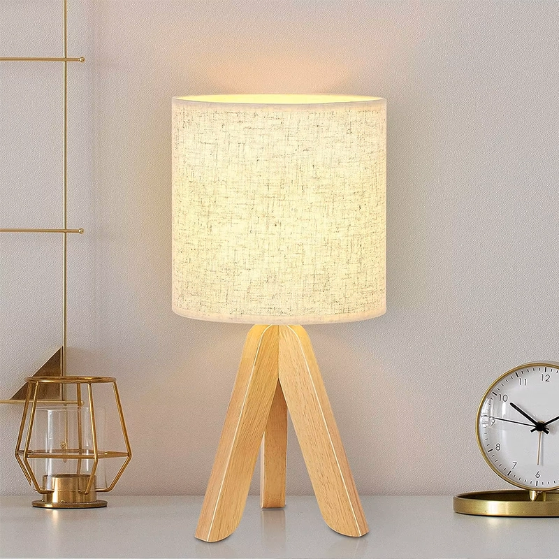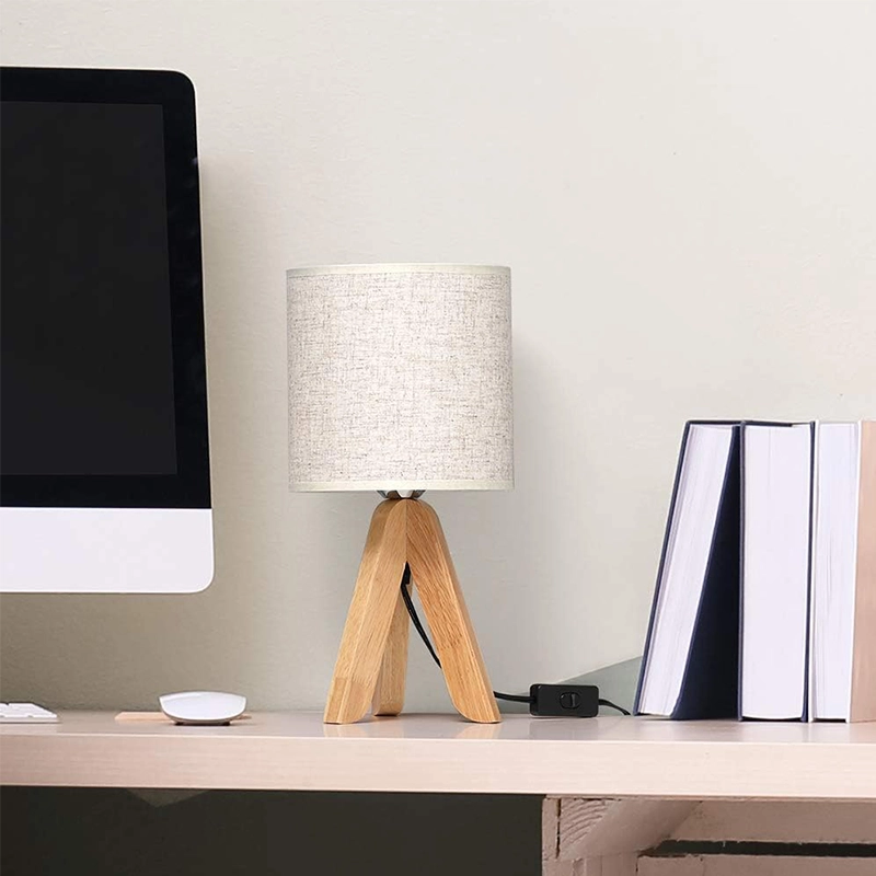 Modern Wooden Bedside Table Lamp with Fabric Shade – E26/E27 Socket