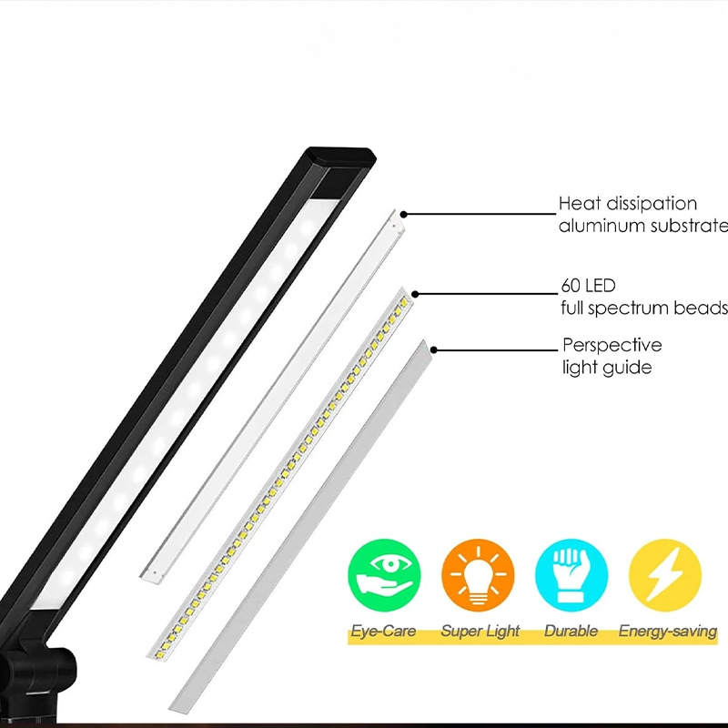 Foldable, Energy-Saving Design with Eye Comfort.Built with a 225° foldable arm and 160° rotating base, this compact LED desk lamp saves space while providing flexible lighting angles. Flicker-free illumination protects your eyes, while the 30/60-minute auto timer energy efficiency and long-term use.