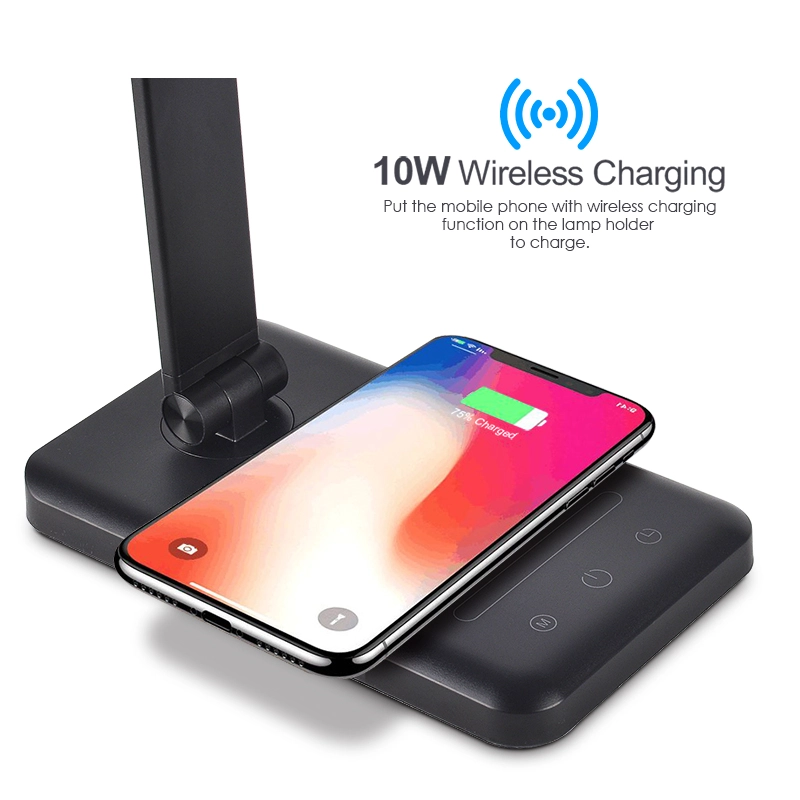 Efficient Charging with 10W Wireless & USB Ports.This LED desk lamp features 10W fast wireless charging and a built-in USB port, allowing you to power up your smartphone or other devices while working, reading, or studying.