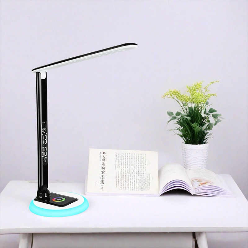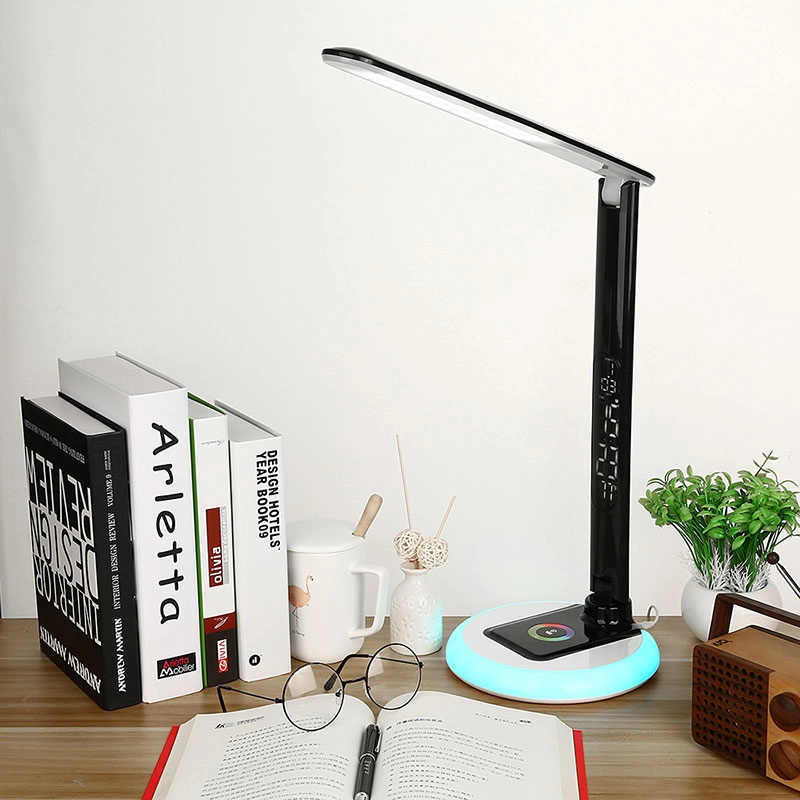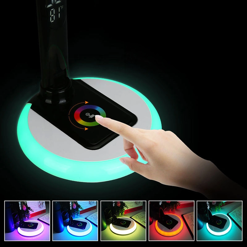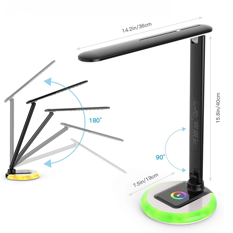 RGB Base LED Desk Lamp with LCD Display, Foldable Arm & USB Charging